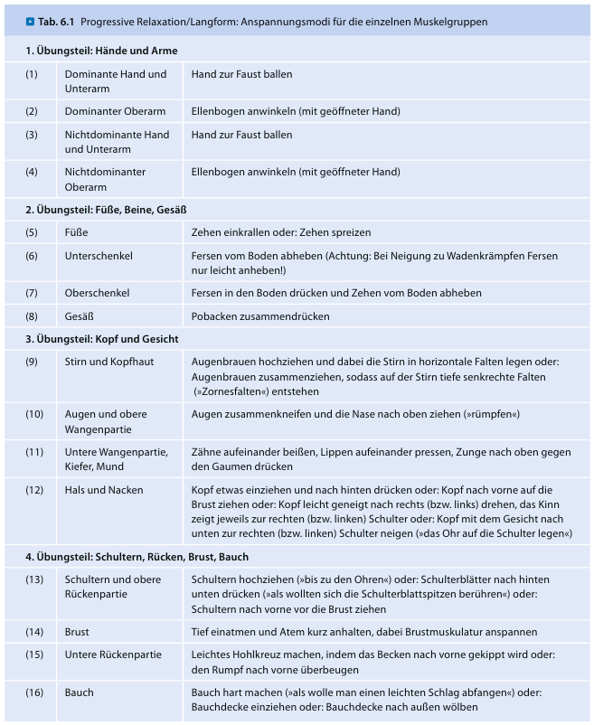 Hier noch eine Übersicht zur Langform der progressiven Relaxation: